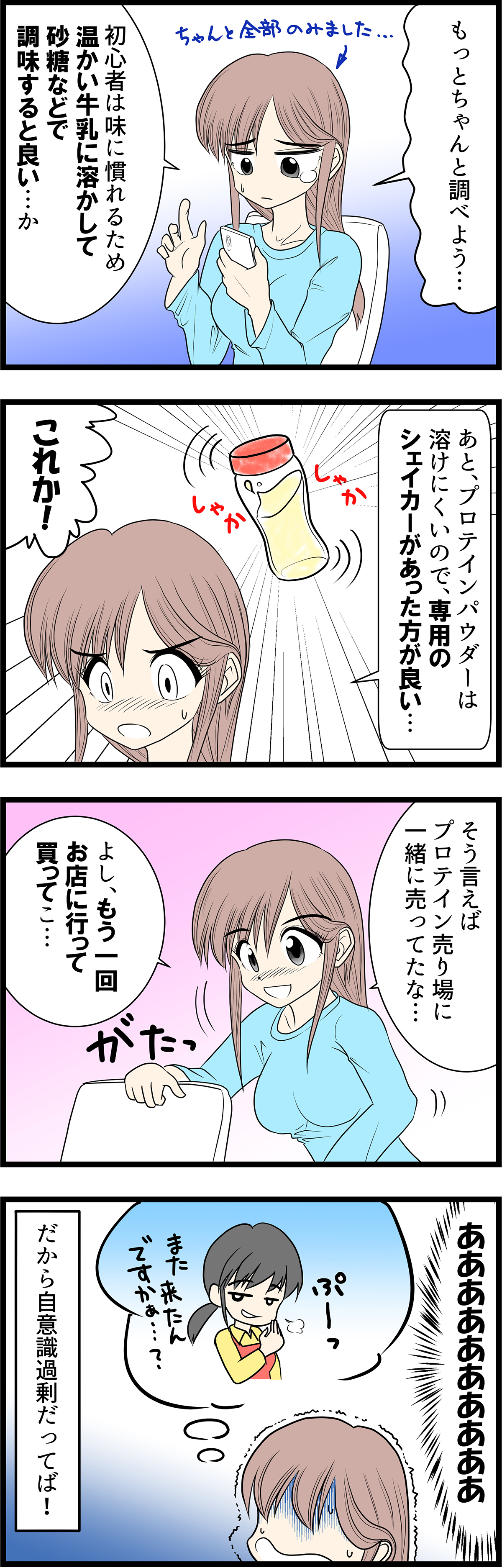 朝食でたんぱく質を取るために,プロテインパウダーを利用することにしたなお先生,うまく溶けずに悪戦苦闘した結果・・・